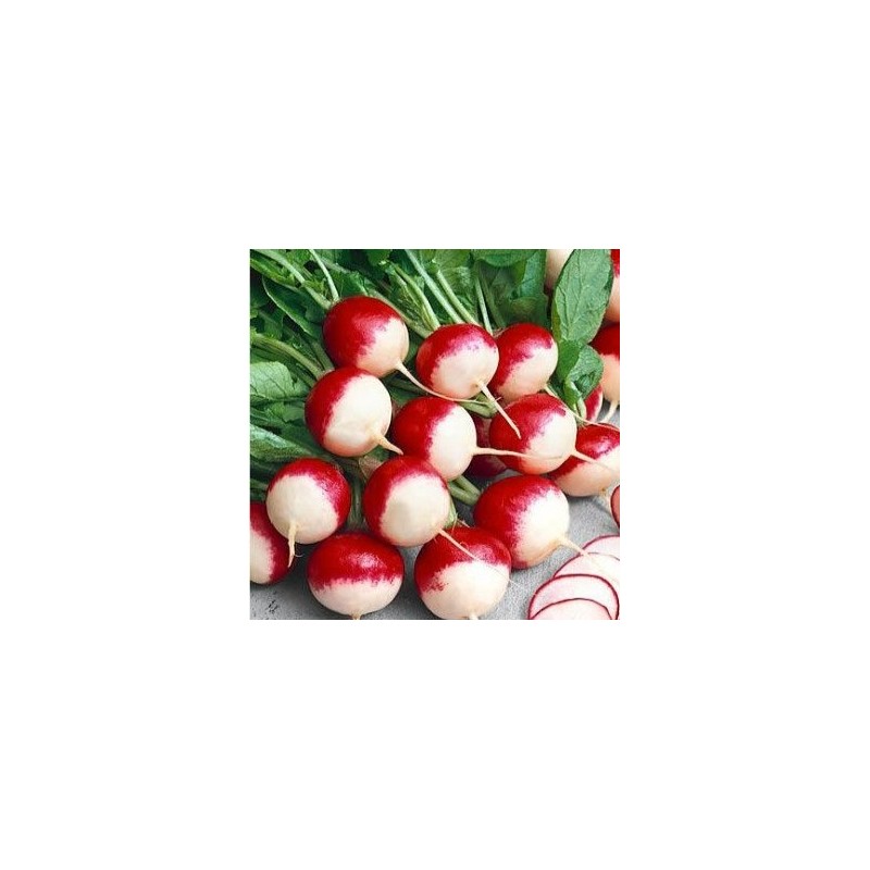Variété rustique, racine bien ronde, rose vif à bout blanc.